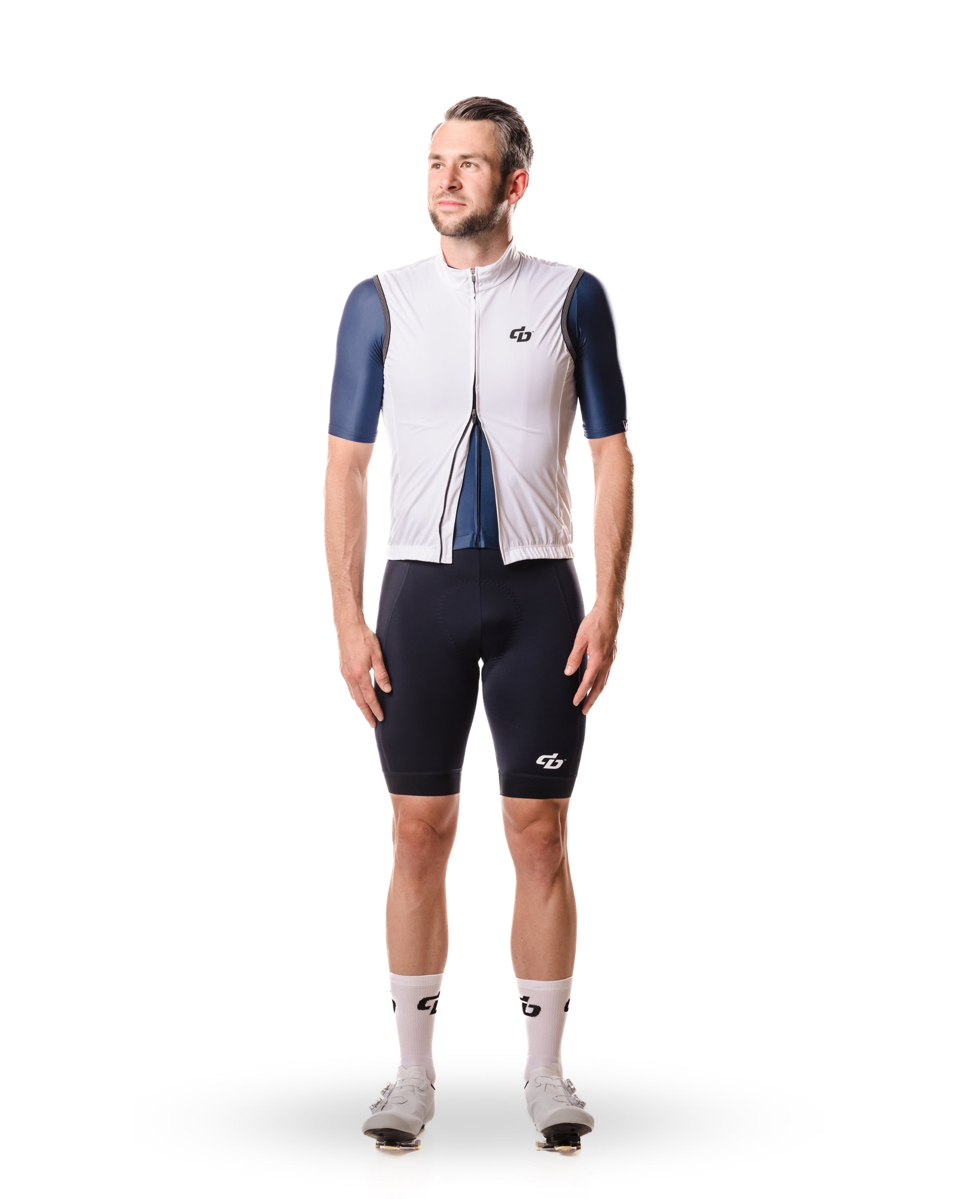 Fits snug and close to the body. When not in use, fold it up and stash it in your pockets or in-between your back and jersey. Size up if you don't want a race fit.
